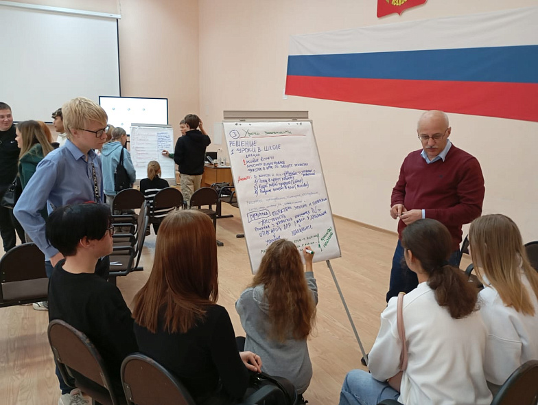 Эксперт ШПО НовГУ Александр Черепица познакомил студентов с организацией проектного обучения в НовГУ, рассказал об основных треках проектной деятельности, внутренних и внешних конкурсах для проектных команд. Команды генерировали идеи и прорабатывали в экспресс-формате основные этапы проектов.
