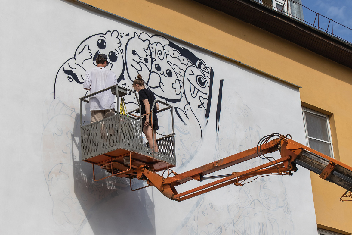 — Фасадную мы использовали на фон, а аэрозольную — для рисования персонажей. Производители краски закладывают семь лет на её выгорание. Остальное зависит уже от отделочника, который штукатурил эту стену, — рассказал Андрей Кожуро.