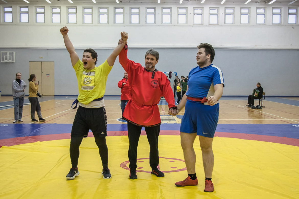— Поясная борьба сейчас даже зарегистрирована в этноспорте как народный вид борьбы. Эту игру называли «пояски», «подпояски», «в обхват». Аналог греко-римской борьбы: студенты сражались, как 200 лет назад наши предки. Всего у нас было восемь команд, по одной от каждого института НовГУ, — рассказал директор Центра физического развития и спорта НовГУ Вадим Боголаев. — Ребята состязались в силе и ловкости и умении сплачиваться. Три лучших дружины получили по кубку князя Ярослава Мудрого, а каждый из участников команд был награждён медалью.
