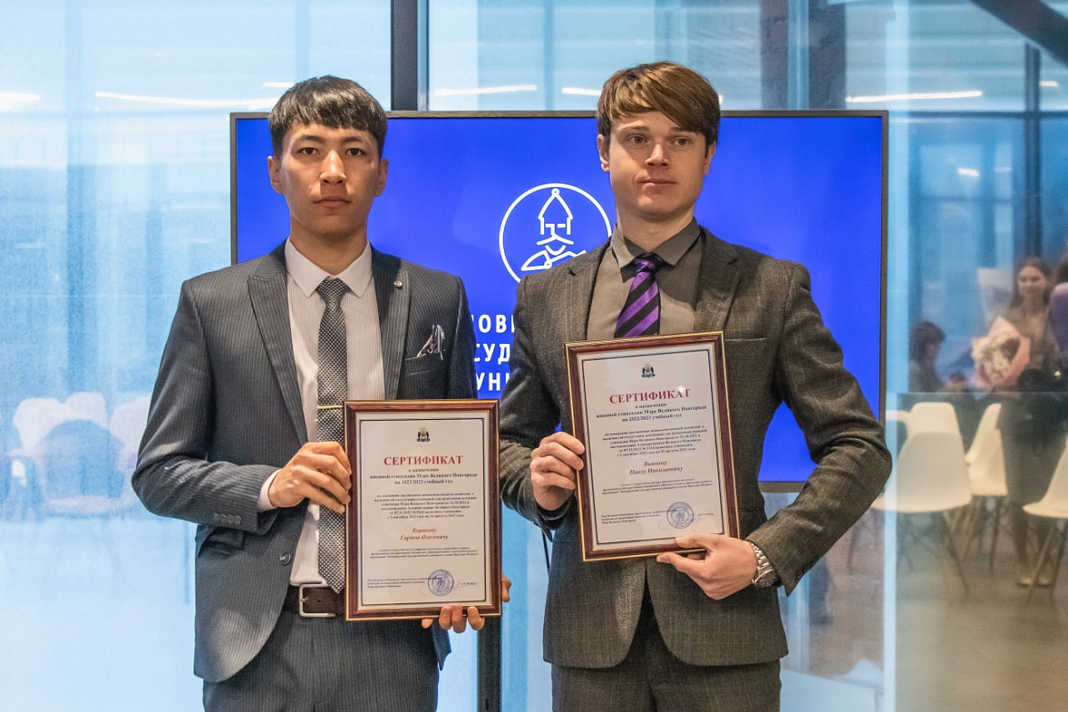 В 2022-2023 году именные стипендии мэра Великого Новгорода будут получать студенты Новгородского университета: Дария Баранова, четверокурсница Юридического института; Павел Вьюнов, второкурсник магистратуры Юридического института; Гардей Корнеев,четверокурсник Института цифровой экономики, управления и сервиса; Степан Малахов, четверокурсник Юридического института; Татьяна Муромцева, студентка пятого курса Института непрерывного педагогического образования; Наталья Потапова, студентка пятого курса Гуманитарного института.
