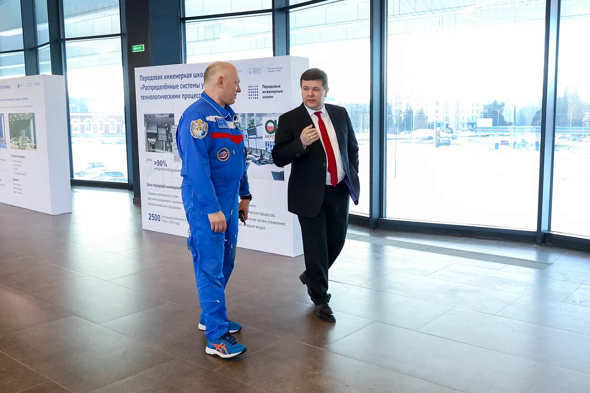 Лётчик-космонавт Олег Артемьев 16 марта посетил Новгородскую техническую школу. Экскурсию для Героя России провёл ректор Новгородского государственного университета имени Ярослава Мудрого Юрий Боровиков.