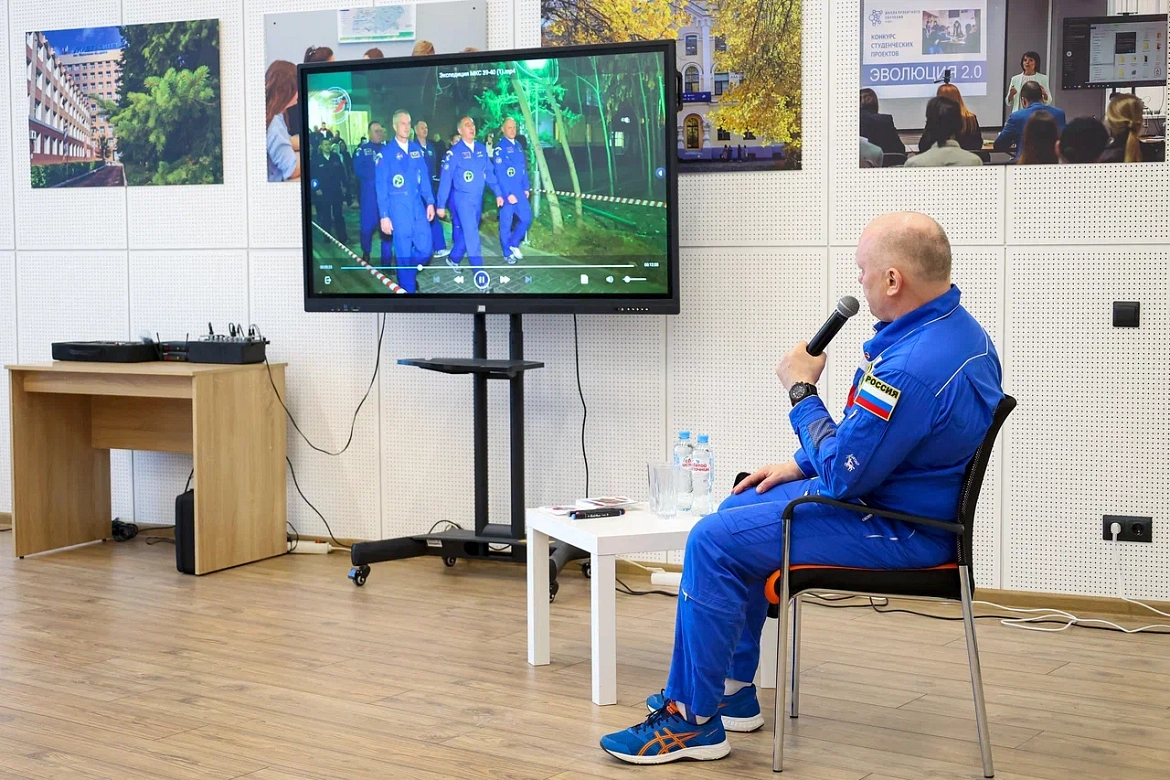 На встрече со студентами Олег Артемьев поделился впечатлениями от первого полёта: