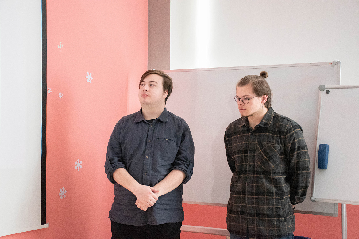 Проектная команда из студентов-журналистов — Егора Тарасова, Марины Даниловой, Евгения Филиппова, студентки-педагога Дарьи Братышевой и студента-юриста Николая Стельмакова представили проект социального пространства «Сова в тумане», который будет располагаться в Гуманитарном институте НовГУ.