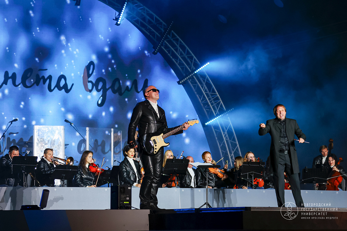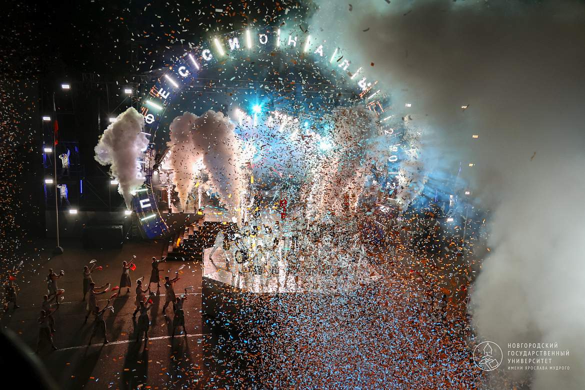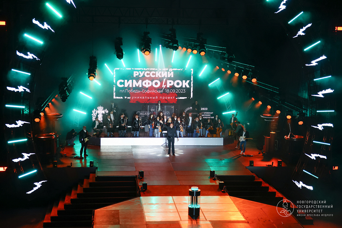 Со сцены прозвучал гимн России в исполнении солиста Новгородской областной филармонии Даниила Шабарова. В завершении открытия прошла концертная программа симфонического оркестра Новгородской областной филармонии под руководством Льва Дунаева «Русский Симфо-Рок».