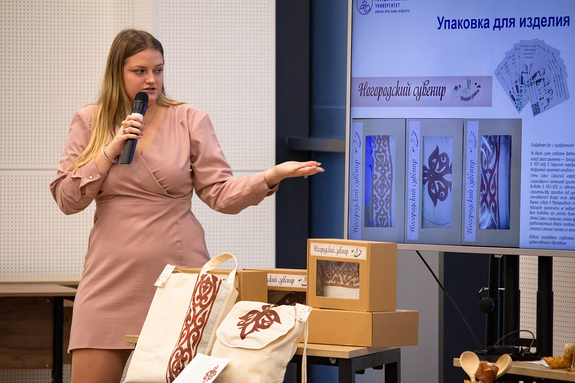Одна из команд занималась разработкой, изготовлением и продажей сумок с узором в виде орнамента XII века из Софийского собора. Аксессуары студентки продавали через новгородские магазины и добавляли к ним вкладыши с рассказом об узорах.