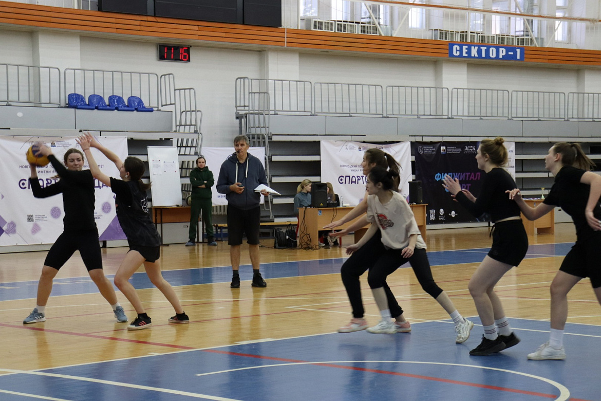 В рамках спартакиады НовГУ прошёл турнир по женскому баскетболу 3х3.