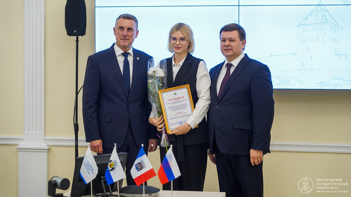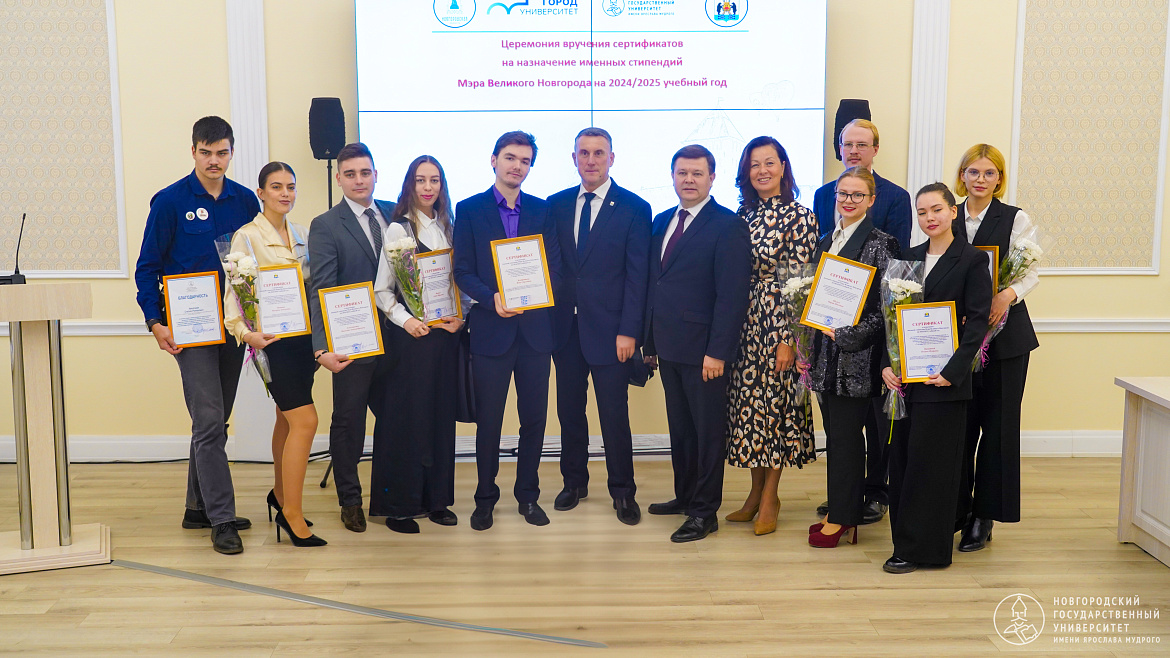 Обладателями стипендии стали студенты Николай Алексашкин, Кирилл Васьков, Анастасия Демидова, Илья Кондратьев, Полина Паршина, Валерия Попович, Алёна Фитьо, Мария Шульга. Сертификаты вручили ректор НовГУ Юрий Боровиков и мэр Великого Новгорода Александр Розбаум.