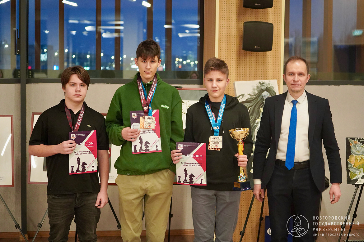 Команда Новгородского университета заняла третье место в IV Международном «Кубке вузов» по шахматам. В нём принимали участие шахматисты из разных регионов России, в том числе Москвы и Санкт-Петербурга, а также из Республики Беларусь.