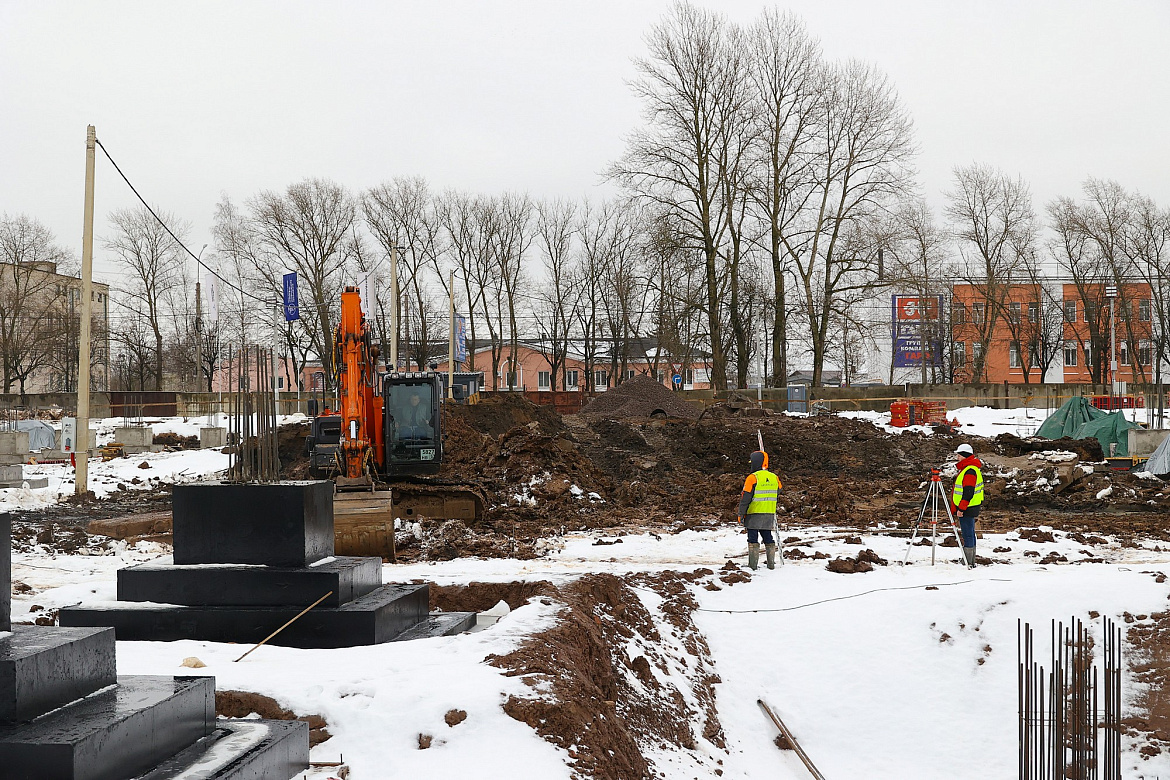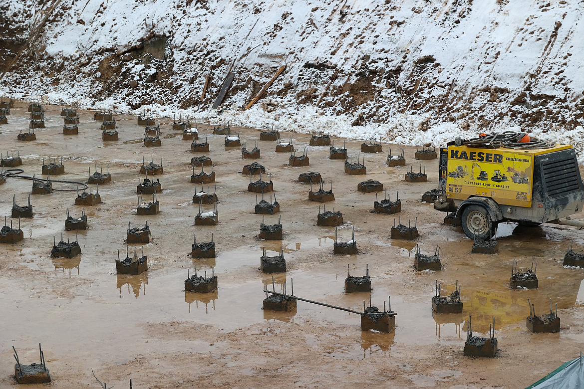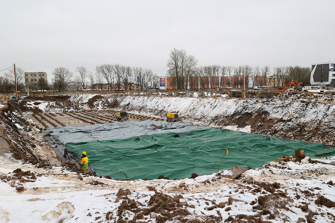 В Великом Новгороде продолжается строительство современного университетского кампуса. Идут работы по устройству фундаментов.
