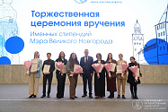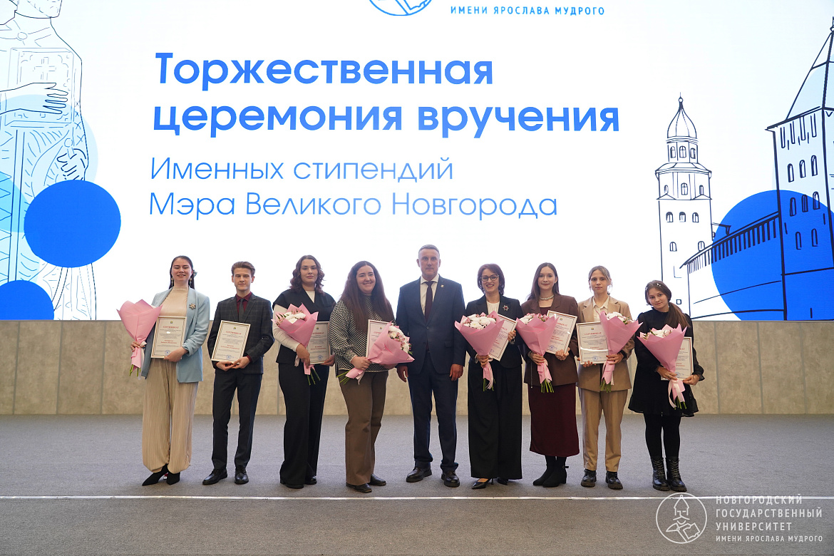 Именные стипендии мэра Великого Новгорода получили восемь студентов НовГУ. Александр Розбаум вручил сертификаты студентам Института экономики НовГУ Людмиле Бондаренко и Ксении Игнатовой, учащимся Юридического института НовГУ Александру Бревнову, Марине Родовской и Марине Старициной, а также студентам Педагогического института НовГУ Арине Костиной, Александре Самойленко и Оксане Финалиной.