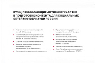 Второй показатель — «Вузы, принимающие активное участие в подготовке контента для социальных сетей Минобрнауки России». Новгородский университет на пятом месте, уступая таким вузам, как Российский экономический университет имени Плеханова, Санкт-Петербургский государственный электротехнический университет «ЛЭТИ», Югорский государственный университет и Донецкий национальный университет экономики и торговли имени Туган-Барановского.