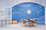 В школе №34, над дизайном которой работали три магистранта второго курса, особое внимание уделили рекреационным зонам. Коридоры преобразовали в пространства с пуфами, игровыми элементами и зонами для коворкинга. В столовой появились плакаты о здоровом питании, а в спортзале — современное покрытие и яркое цветовое оформление.