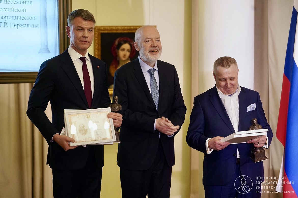 В Великом Новгороде прошла церемония вручения национальной юридической премии имени Гавриила Державина. Премию вручают юристам и государственным деятелям. Поддержку премии получают также талантливые новгородские студенты-правоведы.