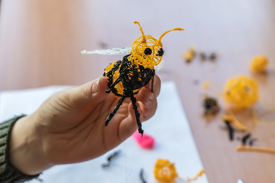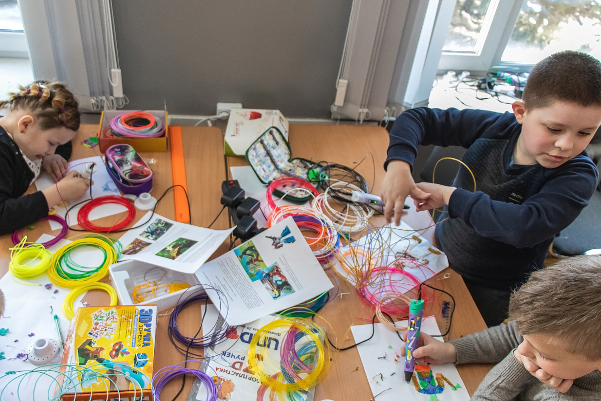 Команды первоклассников и учеников вторых классов рисовали домики для фей, а школьники из третьих и четвёртых классов — супергероев. Участники сначала создали эскизы на бумаге, а затем обвели их 3D-ручками. После этого фигуры приобрели объём.