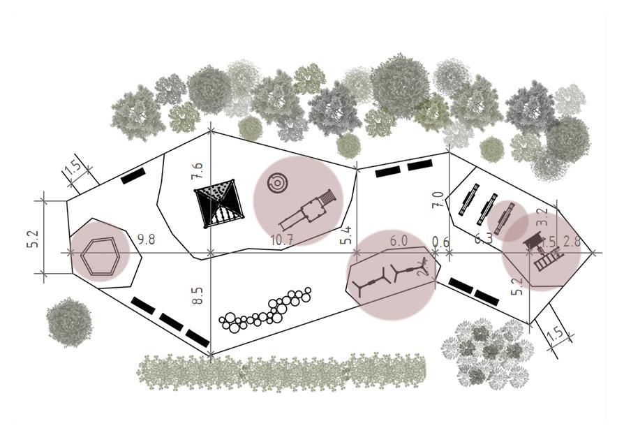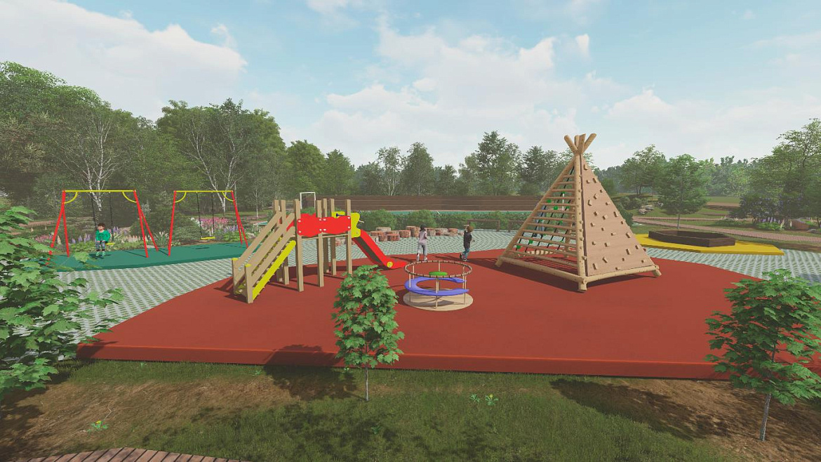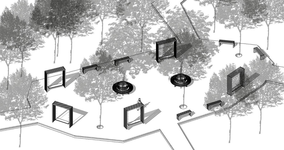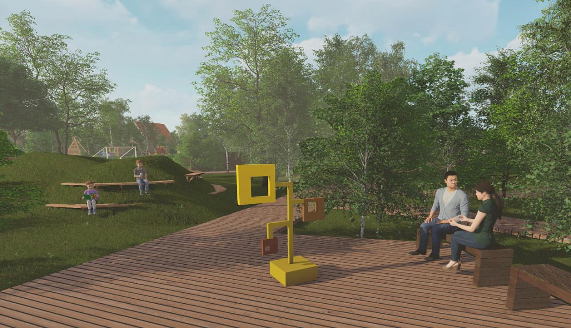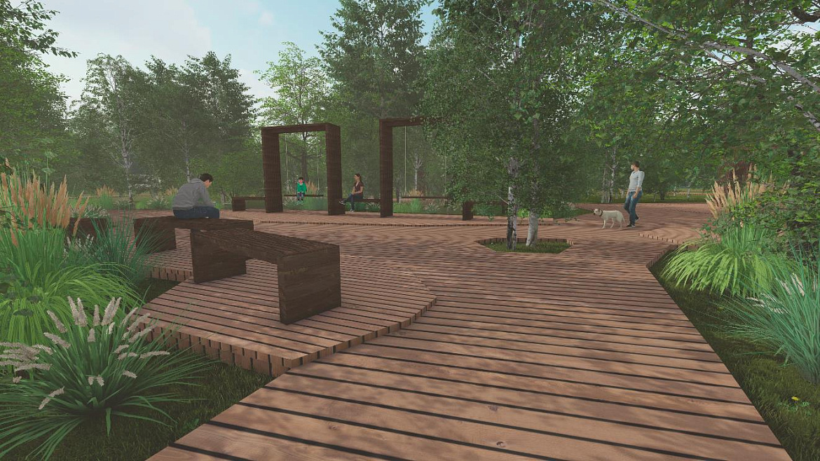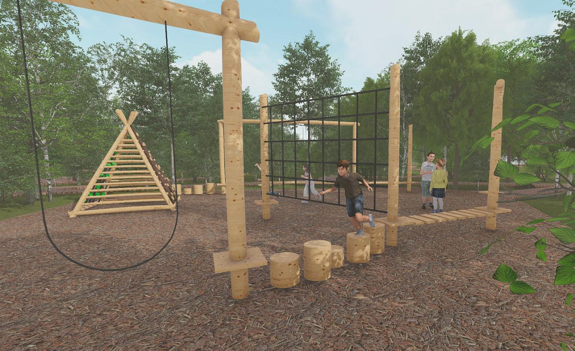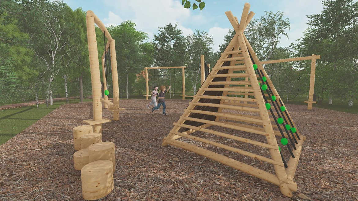 — Концепция проекта строится на использовании зигзагообразных линий, имеющих символическую интерпретацию ветвей деревьев, — рассказала Валерия Круглова. — Все функциональные зоны будут связаны сетью пешеходных дорожек. Тропы будут огибать деревья, поскольку заказчик просил максимально сохранить насаждения. Вырубленные в ходе санитарной расчистки деревья станут материалом для конструкций парка: скамеек, беседок, тренажеров, веревочного городка. Путешествие по веревочному аттракциону будет безопасно для детей, поскольку его высота от земли – 30 сантиметров. Пешеходный путь оснащен приподнятыми дорожками и пандусами. Предполагается установка арт-объекта, прообразом которого послужили лопасти мельницы.