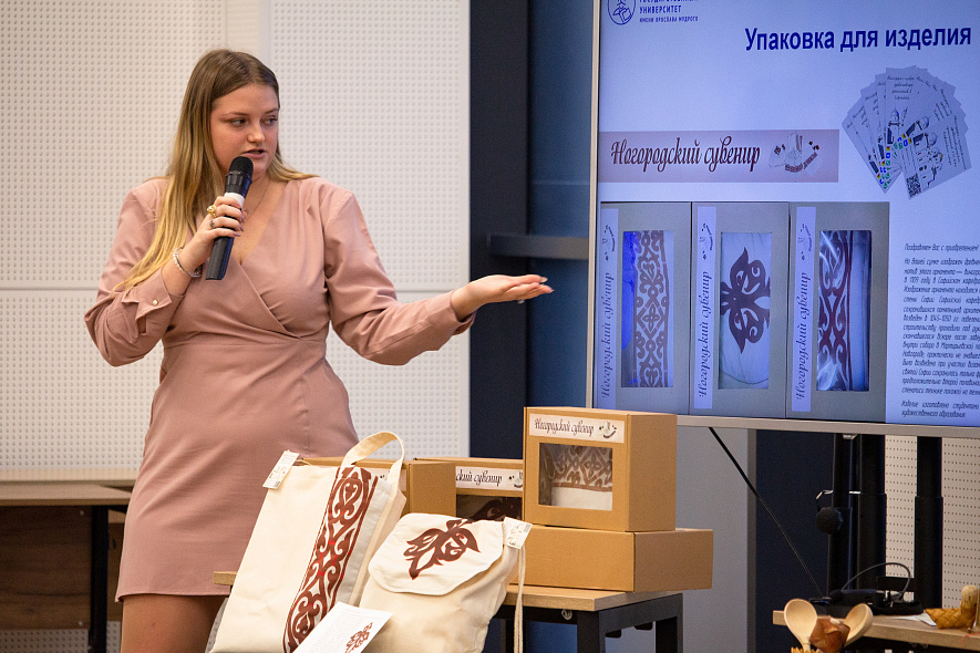 — Нашей целью было распространить культурный код Великого Новгорода и Новгородской области среди туристов, иностранцев, жителей города, — рассказала студентка ИНПО, участница проекта по производству аксессуаров с древненовгородскими орнаментами Кудрявцева Алена. —Поэтому мы занялись серийным производством. В будущем это могут быть не только сумки, но также другие аксессуары и одежда. Сейчас мы проводим маркетинговое исследование, изучаем рынок сувенирной продукции Великого Новгорода.