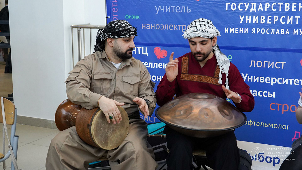 В работе международной площадки приняли участие студенты НовГУ из Китая, Индии, Ирана, Египта. Здесь можно было познакомиться с основами китайского языка и каллиграфии на мастер-классе «Международный китайский», а также послушать этническую музыку, которую иностранные студенты играли на своих национальных инструментах. Кроме того, для всех желающих провели мастер-класс по игре на барабанах.