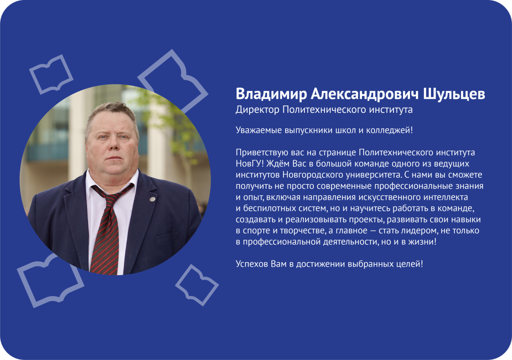 В настоящее время одним из важнейших направлений развития экономики и промышленности Российской Федерации стала научно-техническая сфера: информационные технологии, нанотехнологии, микроэлектроника, электронная компонентная база, радиоэлектроника, машиностроение, новые материалы. Политехнический институт НовГУ осуществляет подготовку по всем указанным направлениям. Политехнический институт создан в 1973 году на базе филиала Ленинградского электротехнического института.