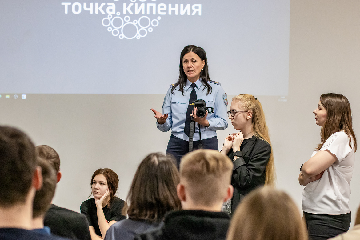 Перед студентами выступили сотрудники Координационного центра, Следственного комитета и УМВД России по Новгородской области.