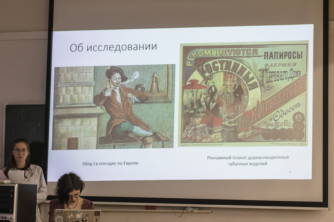 Второкурсницы Полина Докучаева, Кристина Высоцкая, Диана Долматова и Варвара Гусева исследовали развитие табакокурения с XVI века.