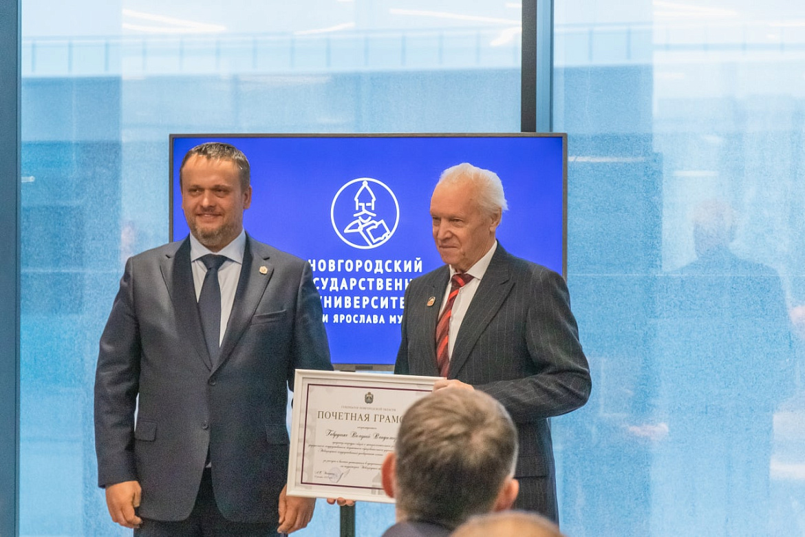 Почётными грамотами Новгородской области награждены: профессоры кафедры общей и экспериментальной физики Валерий Гаврушко и Анатолий Захаров. А также профессор кафедры физики твёрдого тела и микроэлектроники Борис Селезнев.