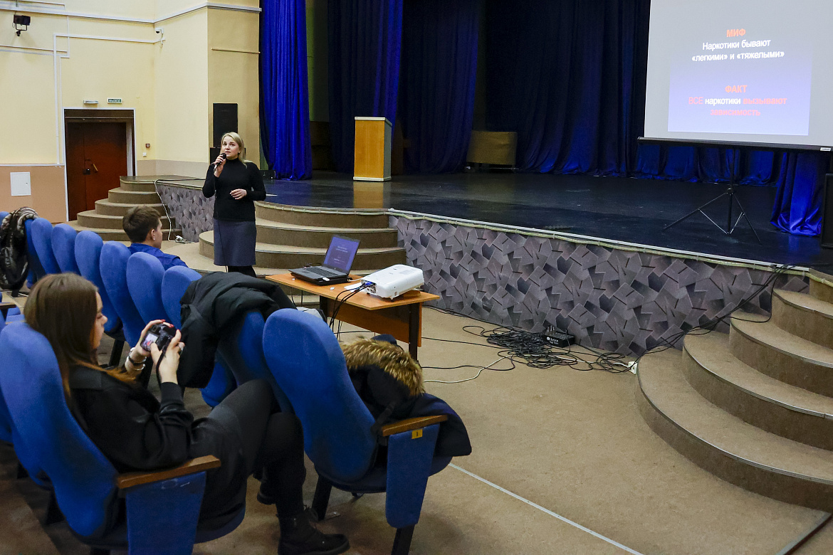 Сотрудник Управления по контролю за незаконным оборотом наркотиков УМВД по Новгородской области Наталья Петрова в рамках беседы в формате «вопрос – ответ» рассказала студентам об опасности наркотиков для жизни и об уголовной ответственности за их оборот.