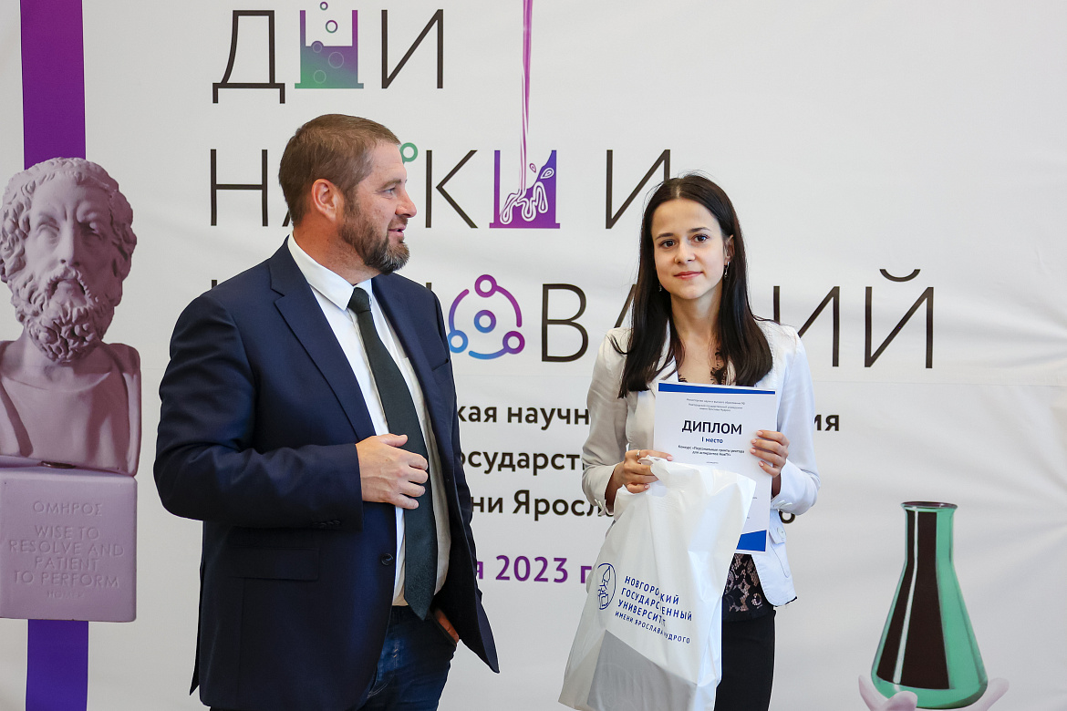На торжественном открытии были вручены дипломы победителям конкурса персональных грантов ректора НовГУ среди аспирантов Марии Рисс и Николаю Петрову.