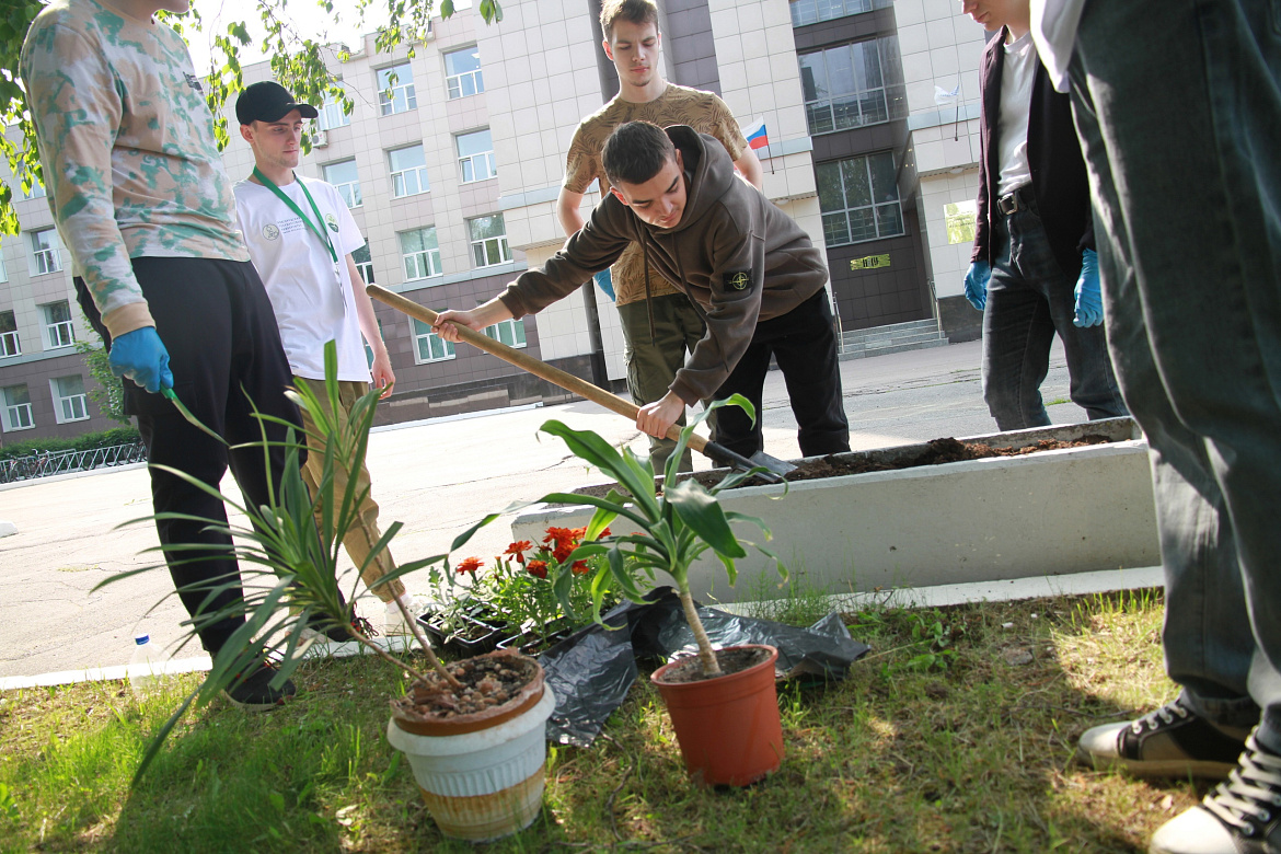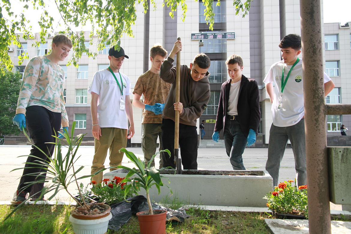 В конце фестиваля участники высадили цветы на клумбах перед главным корпусом Новгородского университета.