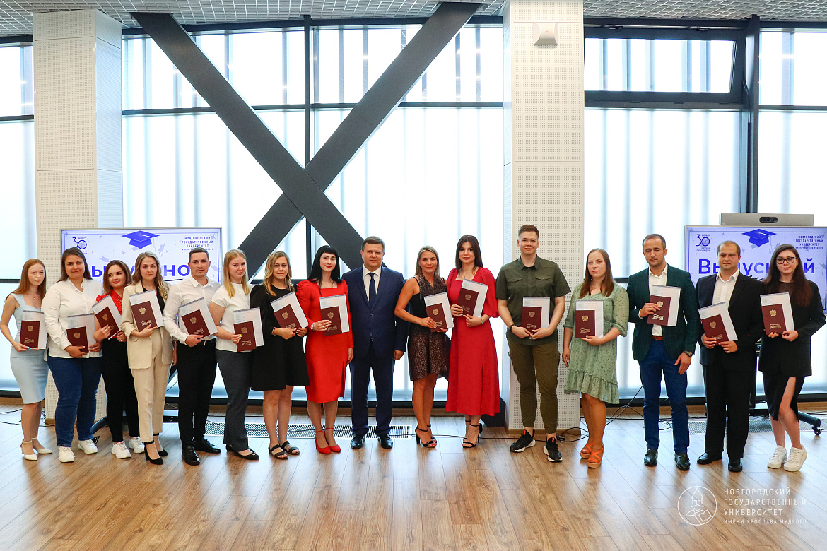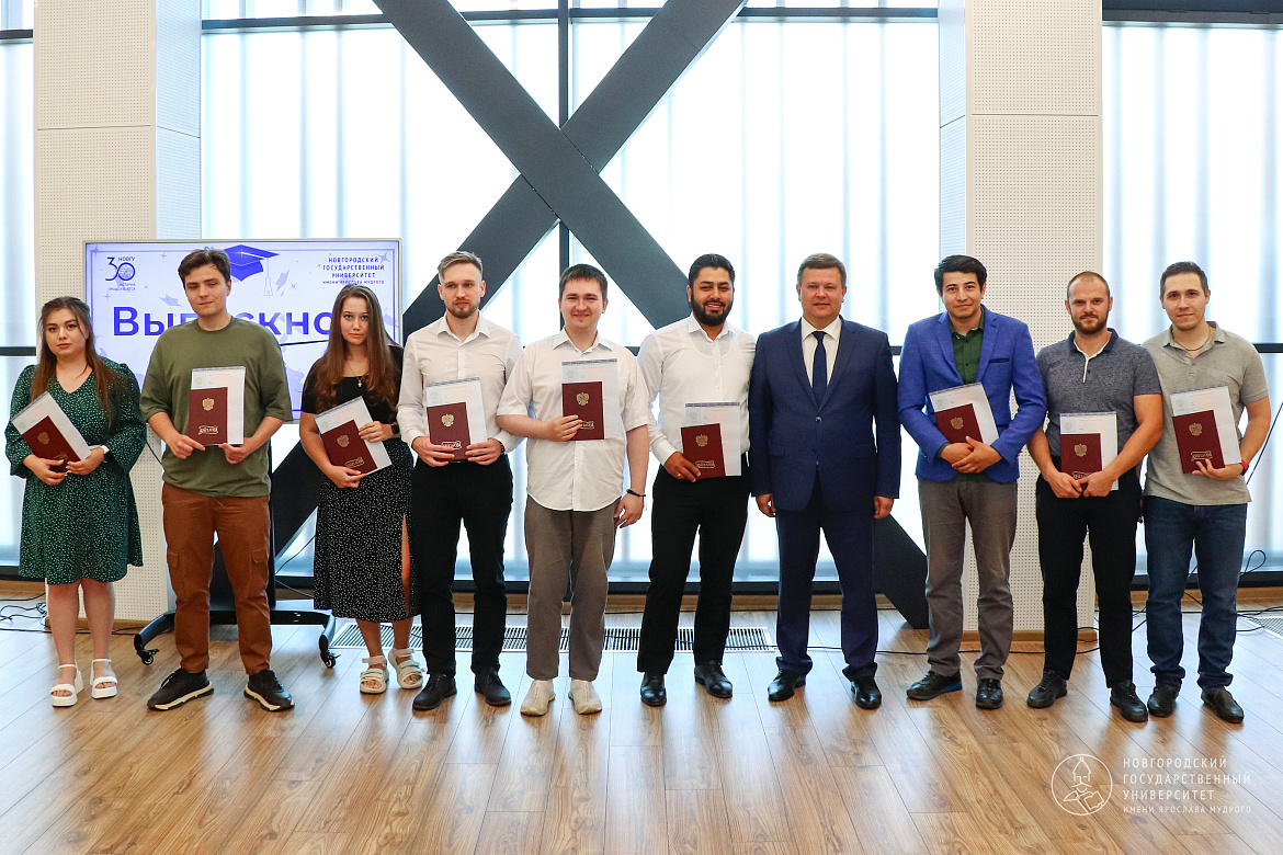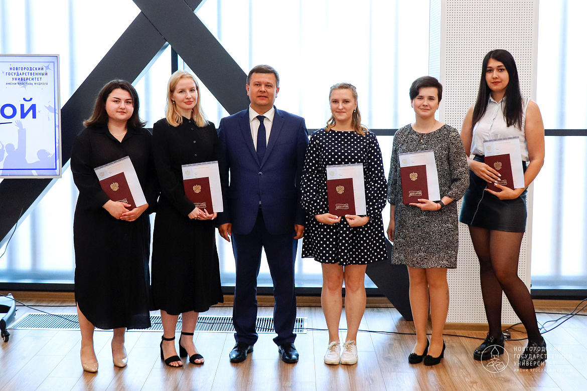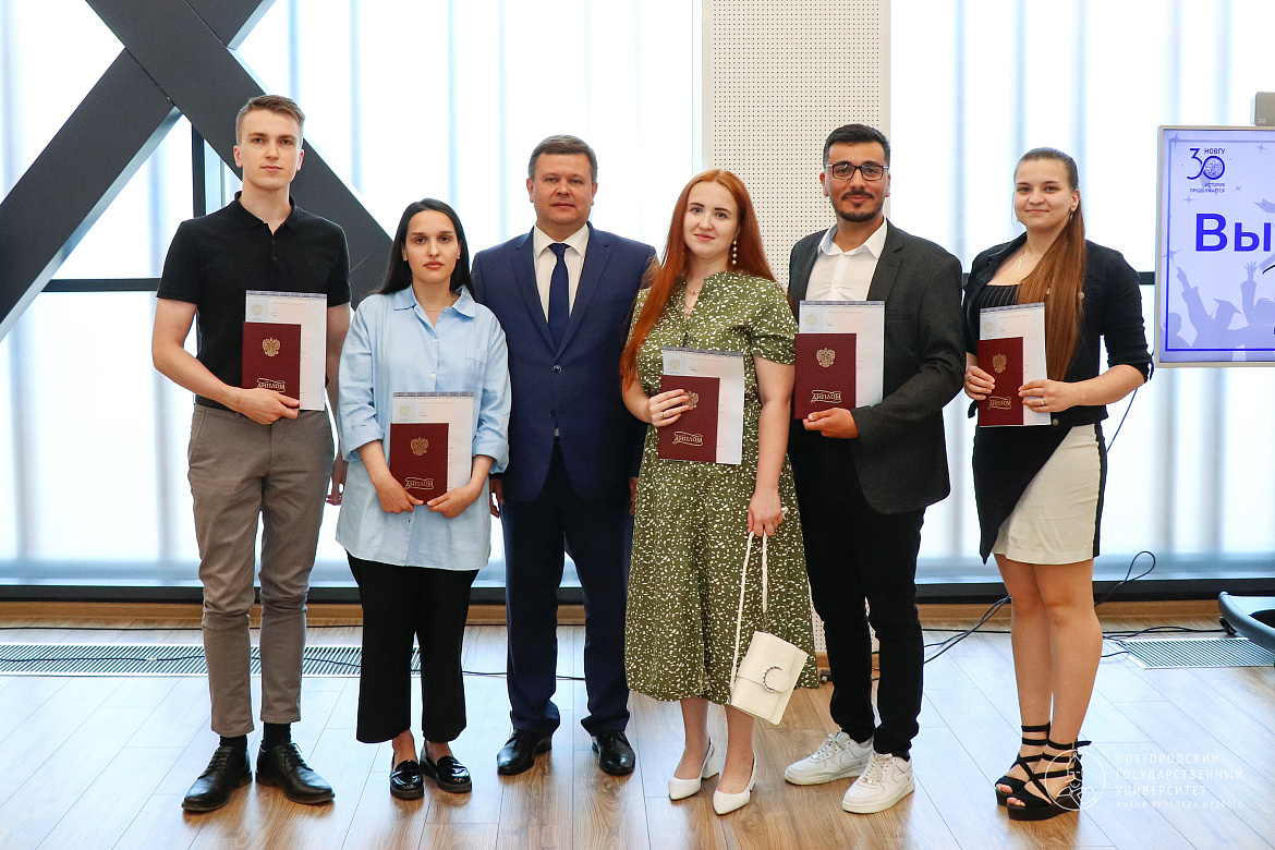 На вручении присутствовали: ректор НовГУ Юрий Боровиков, исполняющий обязанности директора ИМО Василий Чулков, научный руководитель ИМО Виктор Вебер и министр здравоохранения Новгородской области Валерий Яковлев.