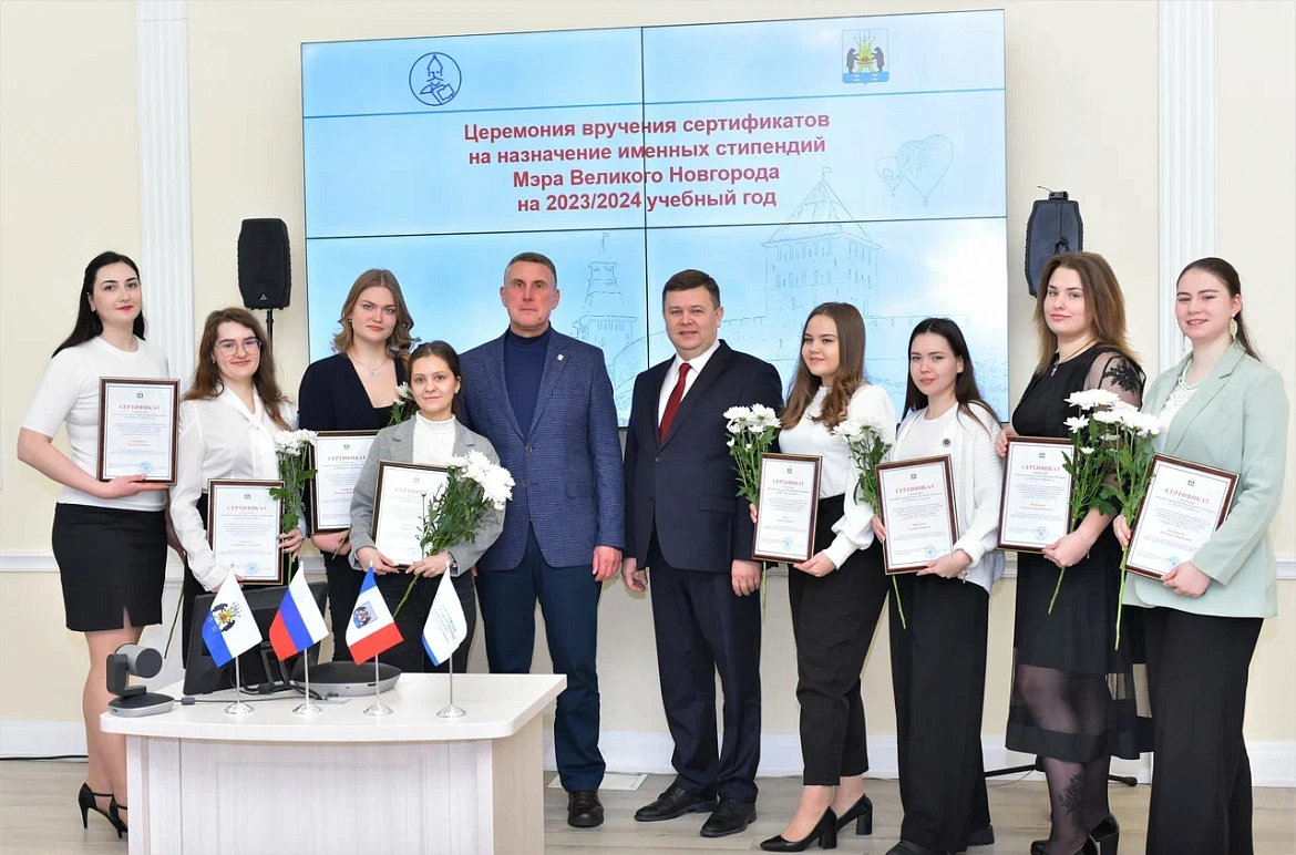 Сертификаты на получение стипендий вручали мэр Великого Новгорода Александр Розбаум и ректор НовГУ Юрий Боровиков. Они отметили весомый вклад, который студенты вносят в жизнь и развитие города.