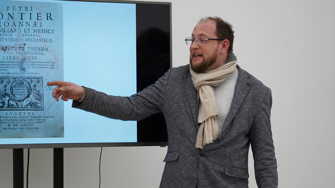 Историю библиотеки архиепископа Феофана Прокоповича в Новгородской семинарии представил доцент кафедры всемирной истории и международных отношений Дмитрий Вебер. Вместе со своей командой он уже описал порядка 400 книг, в планах еще несколько сотен.