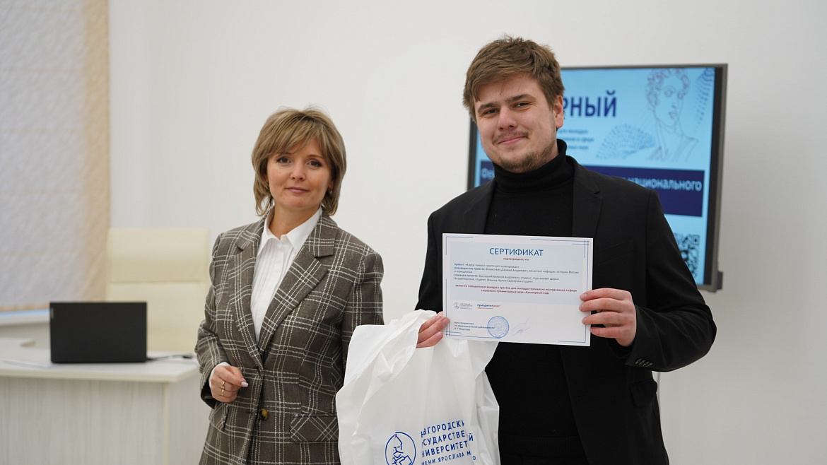 Всего в конкурсе победило шесть работ. Исследование «Культурный код Великого Новгорода как основа формирования городской идентичности» выполнила научный сотрудник Научно-образовательного центра «Гуманитарная урбанистика» Высшей гуманитарной школы «Антоново» Елизавета Спешилова. Проект «Фейки в системе дефрагментации национального культурного кода России» разработал ассистент кафедры философии, культурологии и социологии Дмитрий Лосев. Еще один призер – проект «Формирование социокультурной идентичности личности студентов — будущих педагогов в регионе» профессора кафедры начального дошкольного образования и социального управления доктор педагогических наук Светланы Тращенковой.