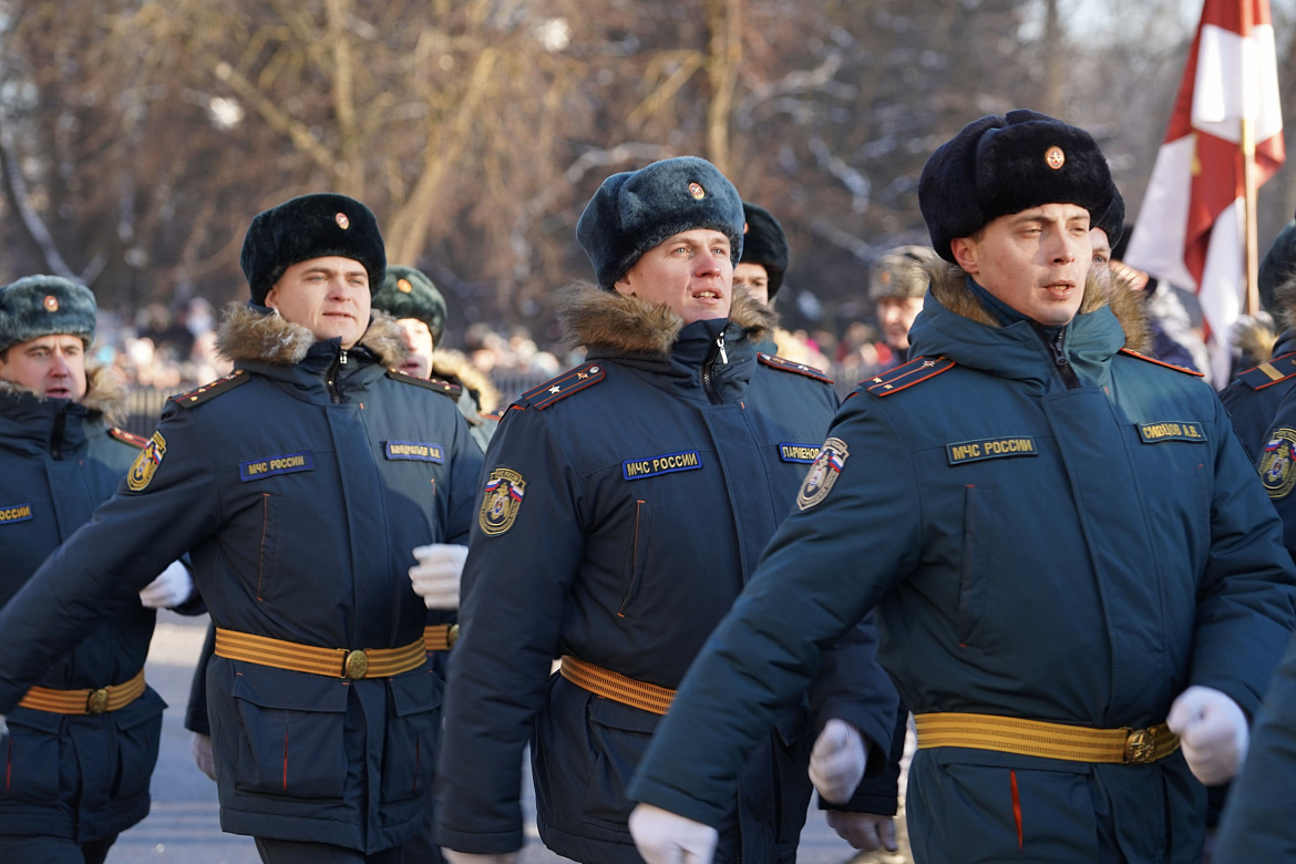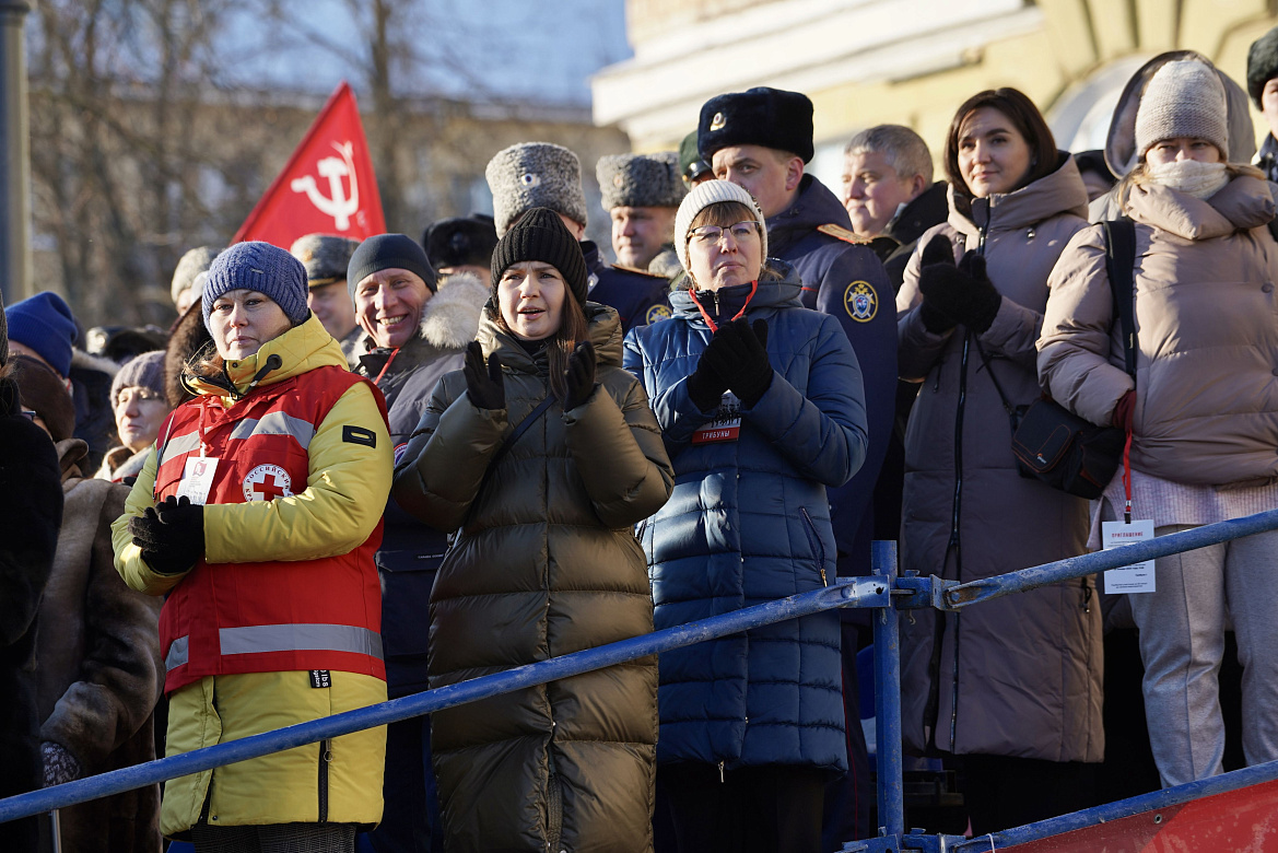 В параде участвовали военнослужащие 42-го гвардейского зенитного ракетного Путиловско-Кировского ордена Ленина полка, региональных Управлений МВД, МЧС, Росгвардии, УФСИН, УФССП, участники СВО.