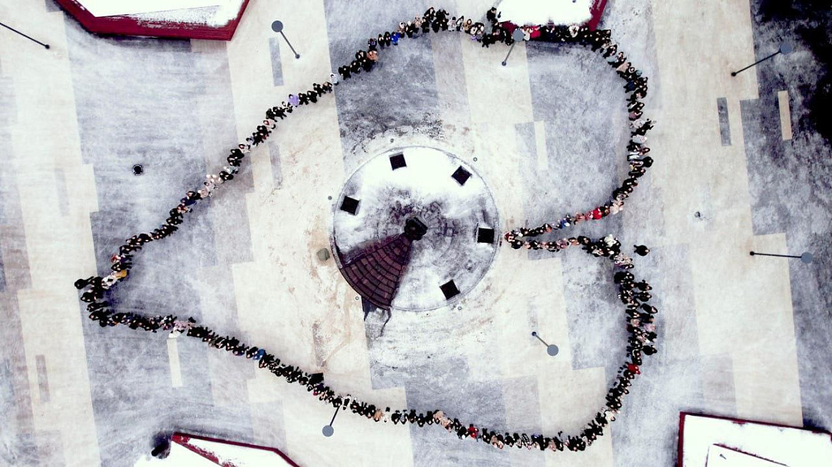 Более 300 участников выстроились в форме сердца вокруг памятника Ярославу Мудрого. Инициатором акции выступил Студенческий совет НовГУ.