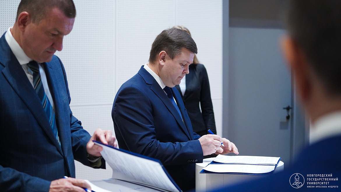 Документ подписали ректор НовГУ Юрий Боровиков и председатель совета директоров ПАО «Акрон» Александр Попов. На встрече присутствовали губернатор Новгородской области Андрей Никитин и вице-президент ПАО «Акрон» Владимир Кантор, председатель Правления и генеральный директор ПАО «Акрон» Владимир Куницкий, исполнительный директор ПАО «Акрон» Олег Тихонов.