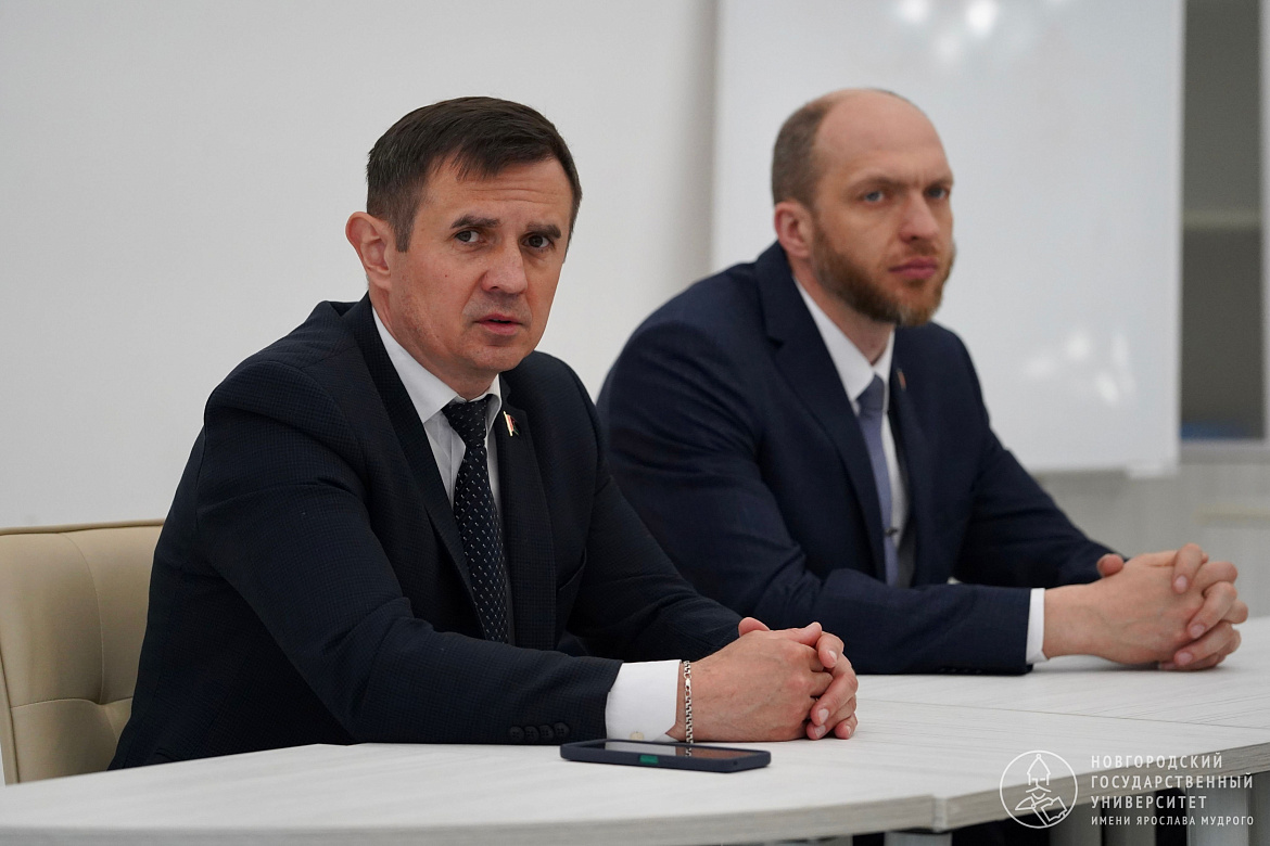 Программу визита открыла встреча со студентами НовГУ из Беларуси. С соотечественниками, которые получают в Великом Новгороде образование по медицинским специальностям, побеседовали ректор Брестского государственного технического университета Сергей Касперович и начальник научно-исследовательской части Николай Шешко. Обсудили темы профориентации и выбора профессии, проблемы трудоустройства.