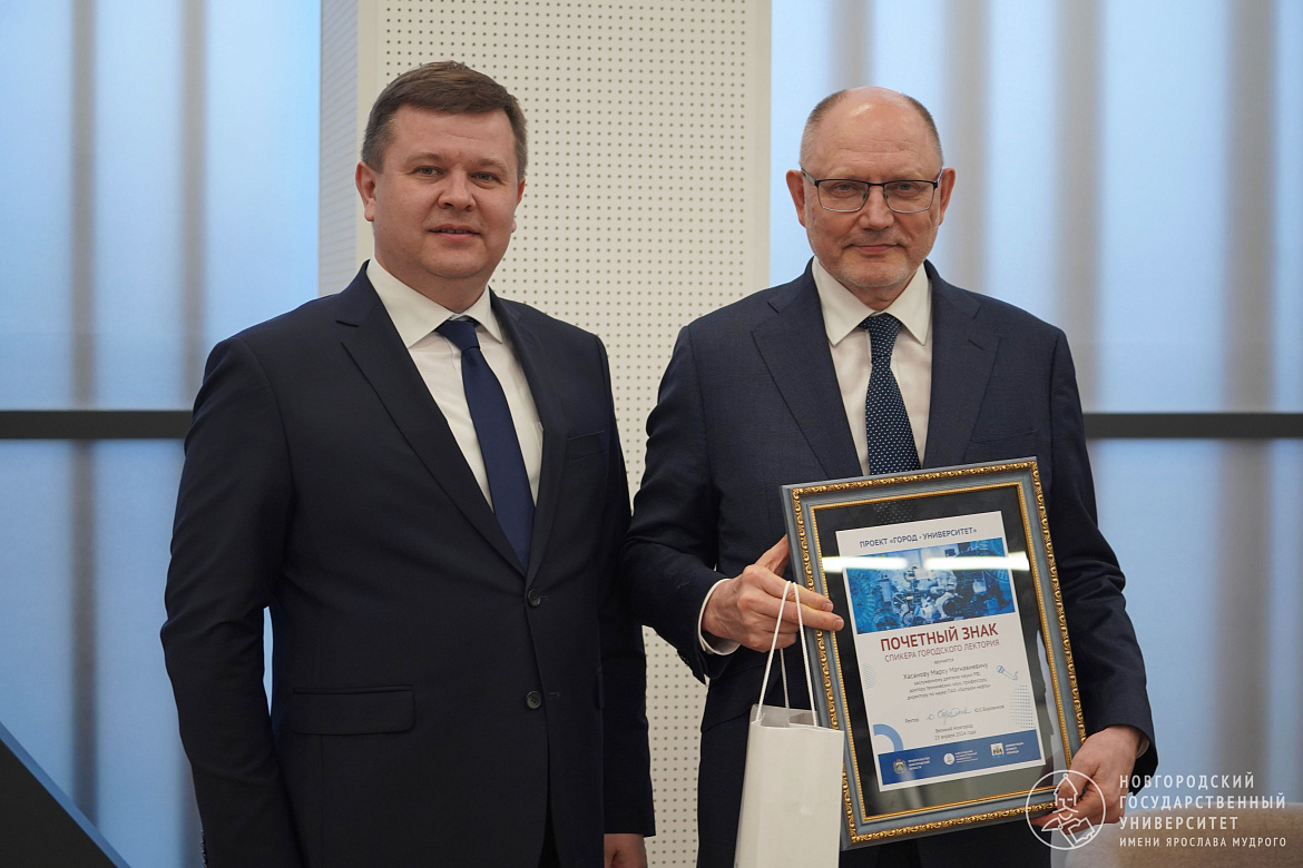 Встреча прошла в рамках проекта «Городской лекторий» приоритетного регионального проекта «Город-Университет». В завершение мероприятия ректор НовГУ Юрий Боровиков вручил Марсу Хасанову почётный знак спикера лектория.