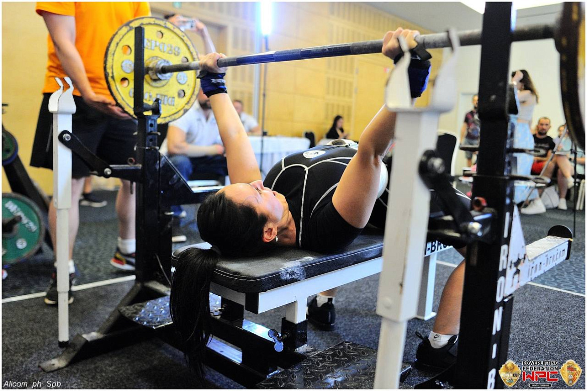 Юлия Андреева заняла второе место в дисциплине жим лёжа с весом 67,5 килограмма, подтвердив также своё звание кандидата в мастера спорта.