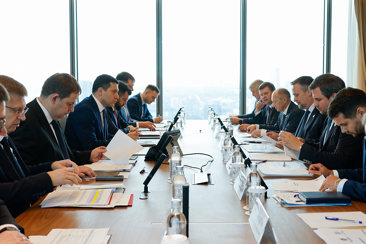 Делегация Новгородской области под руководством губернатора Андрея Никитина встретилась с министром промышленности и торговли РФ Антоном Алихановым. Новгородский университет представлял ректор Юрий Боровиков.