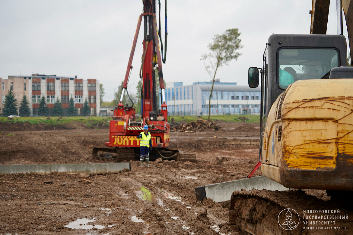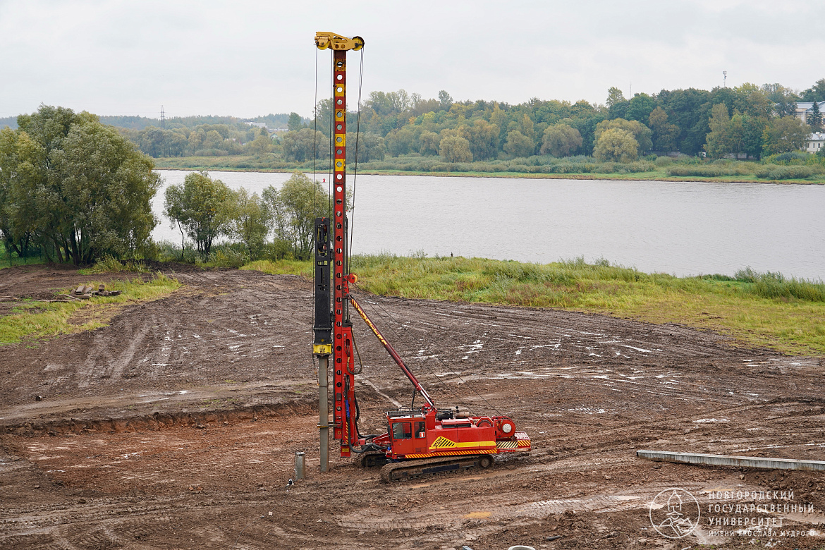 Забиты первые 4 сваи для строительства второй очереди площадки НовГУ ИНТЦ «Валдай»