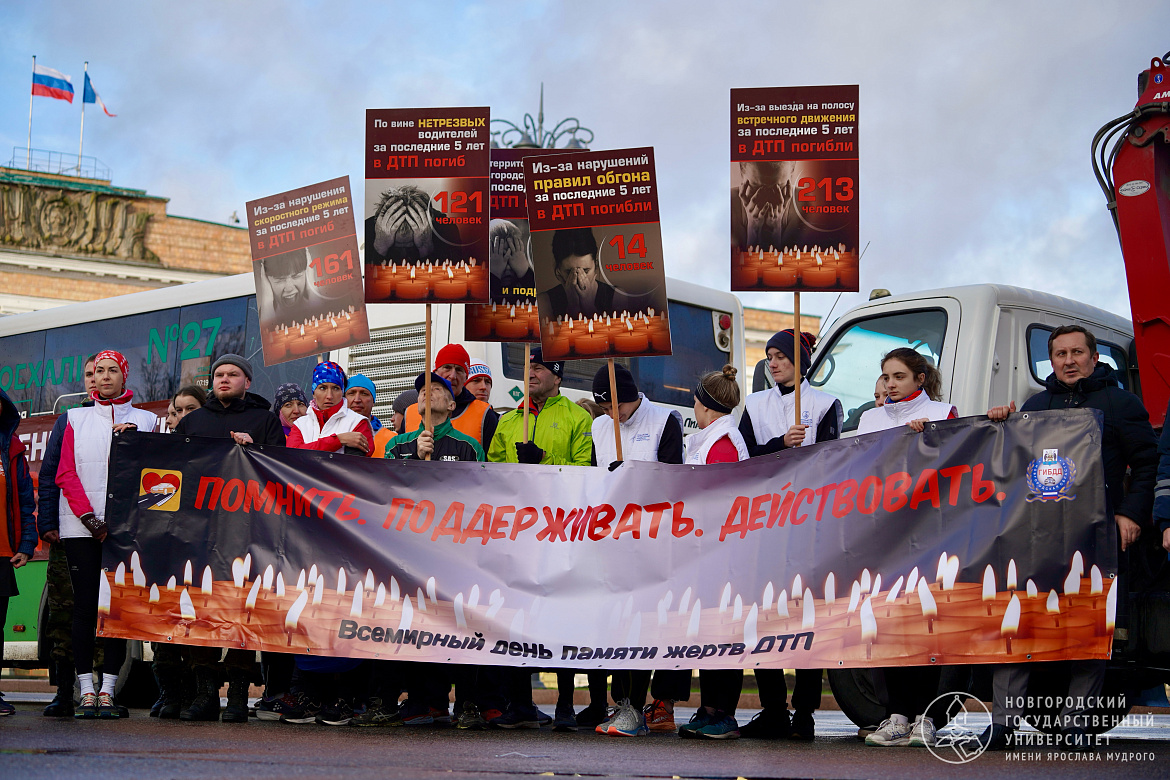 Студенты Новгородского университета приняли участие в эстафете безопасности «Помнить. Поддерживать. Действовать», приуроченной к Всемирному дню памяти жертв дорожно-транспортных происшествий.