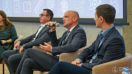 На площадке НовГУ ИНТЦ «Валдай» прошёл «Час с министром». Со студентами и школьниками встретились министр образования Новгородской области Дмитрий Яковлев, директор Педагогического института НовГУ Анатолий Пермяков и управляющий Новгородским филиалом Альфа-банка Сергей Таряник. Гостям можно было задавать вопросы.