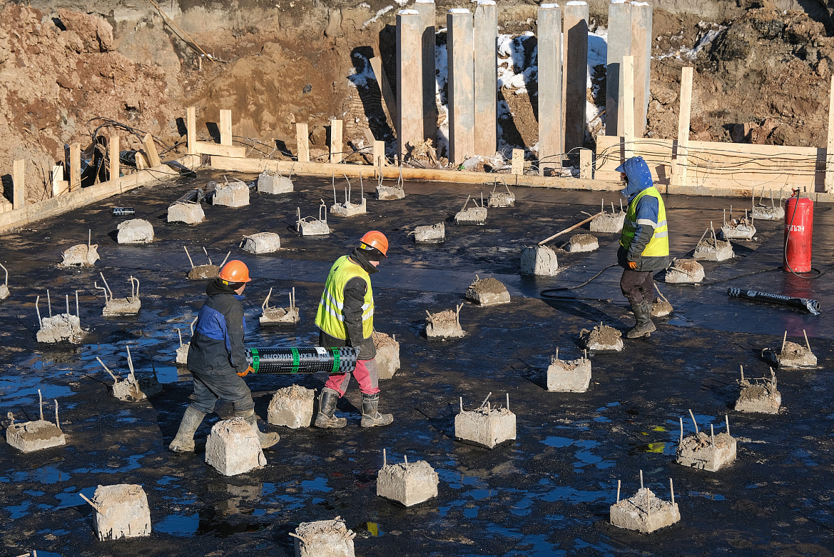 Завершено бетонирование фундаментных плит двух жилых корпусов университетского кампуса