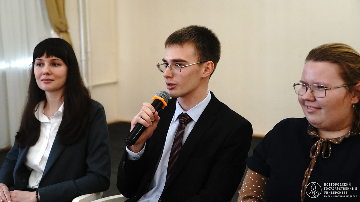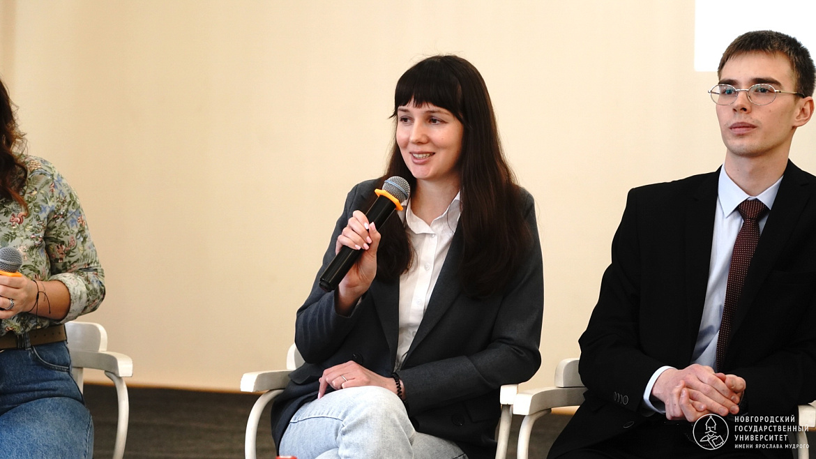 Спикерами также стали председатели студенческих научных сообществ Кирилл Тимофеев и Софья Анисимова. Кирилл Тимофеев поделился опытом поступления в НовГУ.