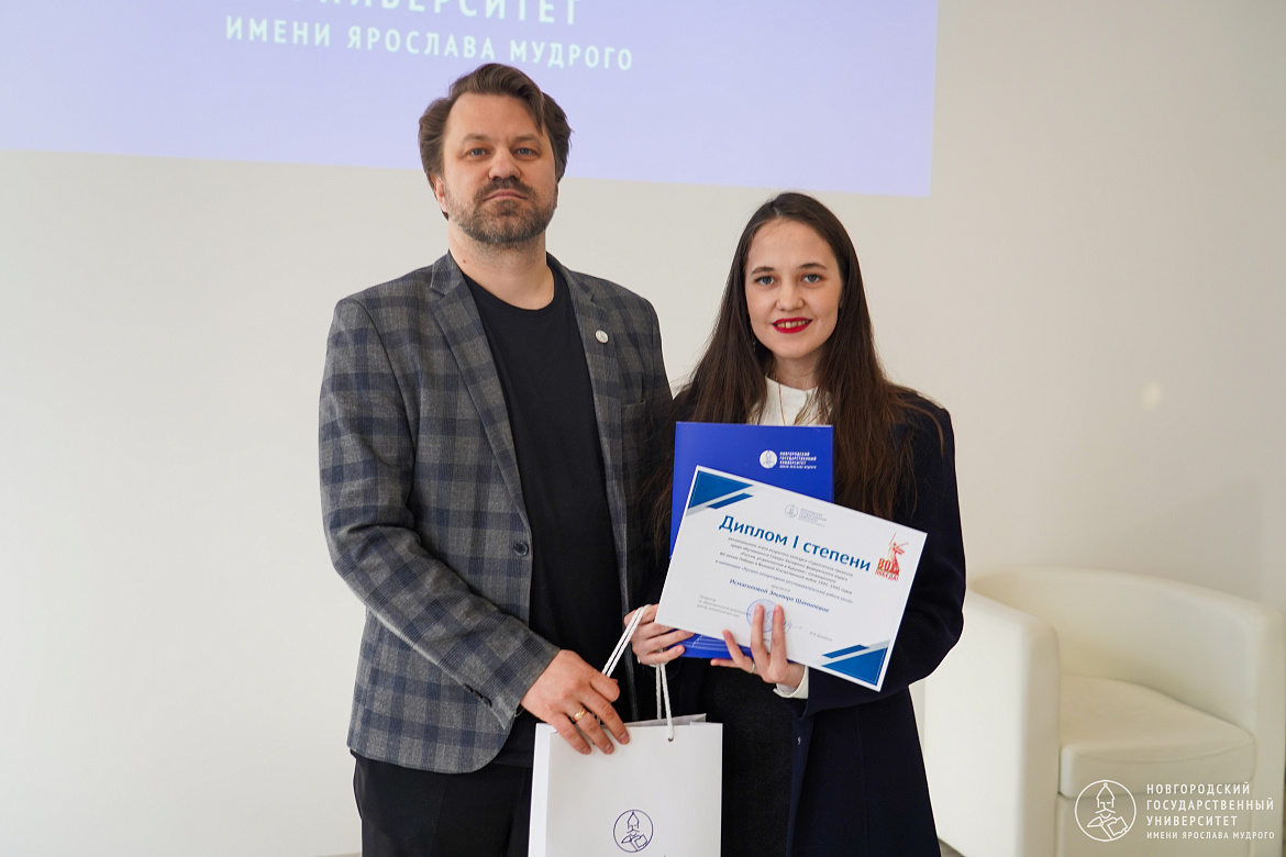 В номинации «Лучшая литературная работа» диплом I степени получила студентка первого курса НовГУ Эльмира Исмагилова. Она представила работу «Наука в горниле испытаний: Война как стимул прогресса.
