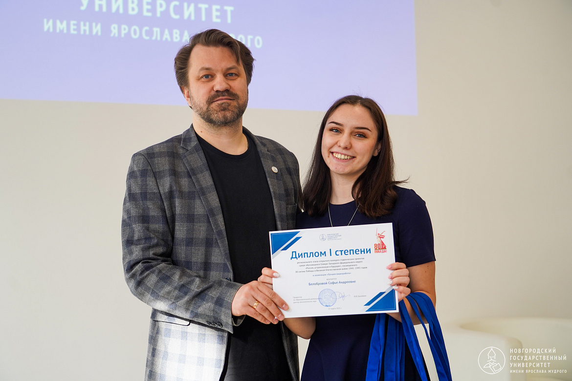 В номинации «Лучшая изобразительная работа» диплом получил первокурсник НовГУ Иван Васильев с фотозарисовкой «Вечный Огонь». В номинации «Лучшая видеоработа» – Софья Белоброва, Наталья Боброва, Руфина Соляных с видеороликом «Тайны Великого Новгорода с Онфимом: Путешествие по архитектурным шедеврам».