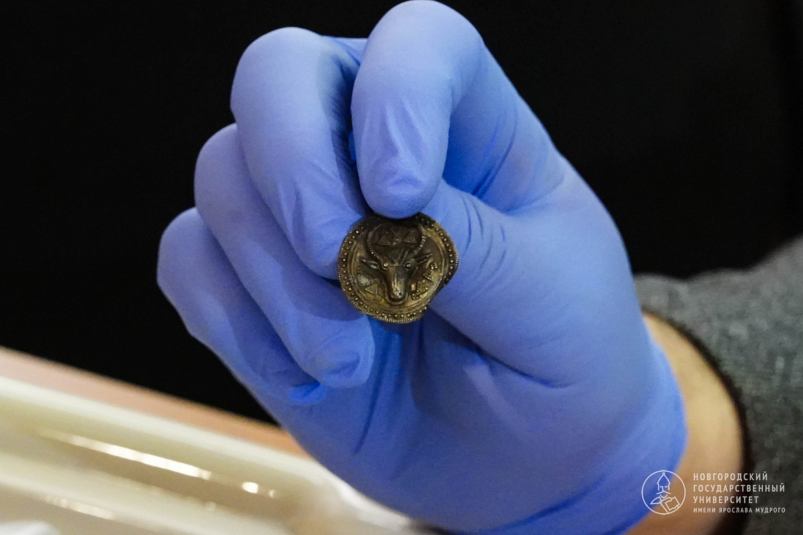 Археологи НовГУ нашли подвеску с головой быка — третью за полвека работ на Троицком раскопе