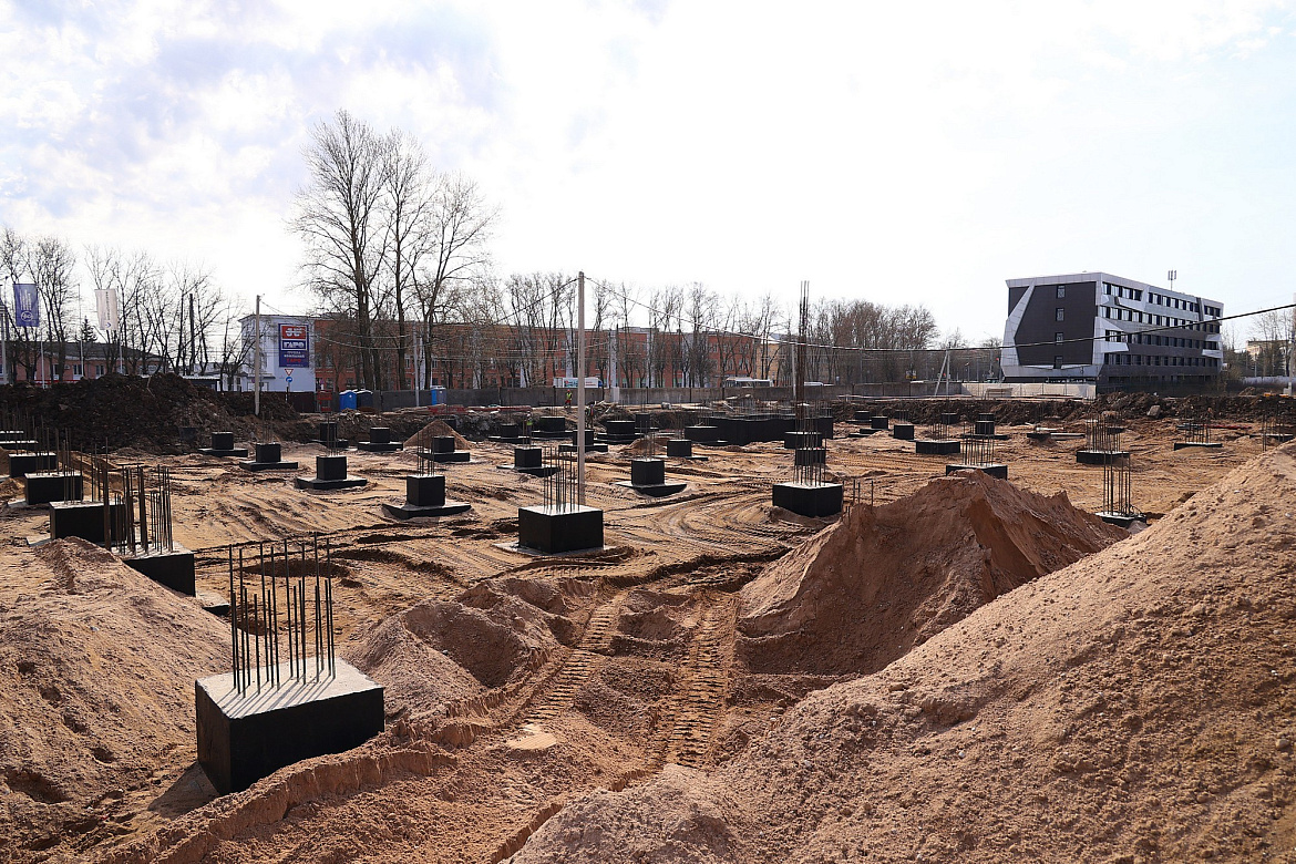 В ходе строительства в основание многофункционального комплекса и жилых корпусов будущего кампуса погружено 2208 железобетонных свай. В основание фундамента залито более 5500 кубических метров бетона, произведено армирование фундаментных плит с использованием более 480 тонн арматуры. В общей сложности на строительной площадке задействовано 19 единиц техники, 50 строителей работают в дневную смену и 24 – в ночную.