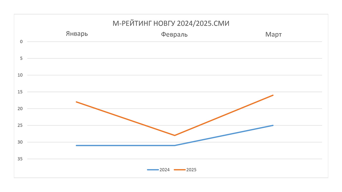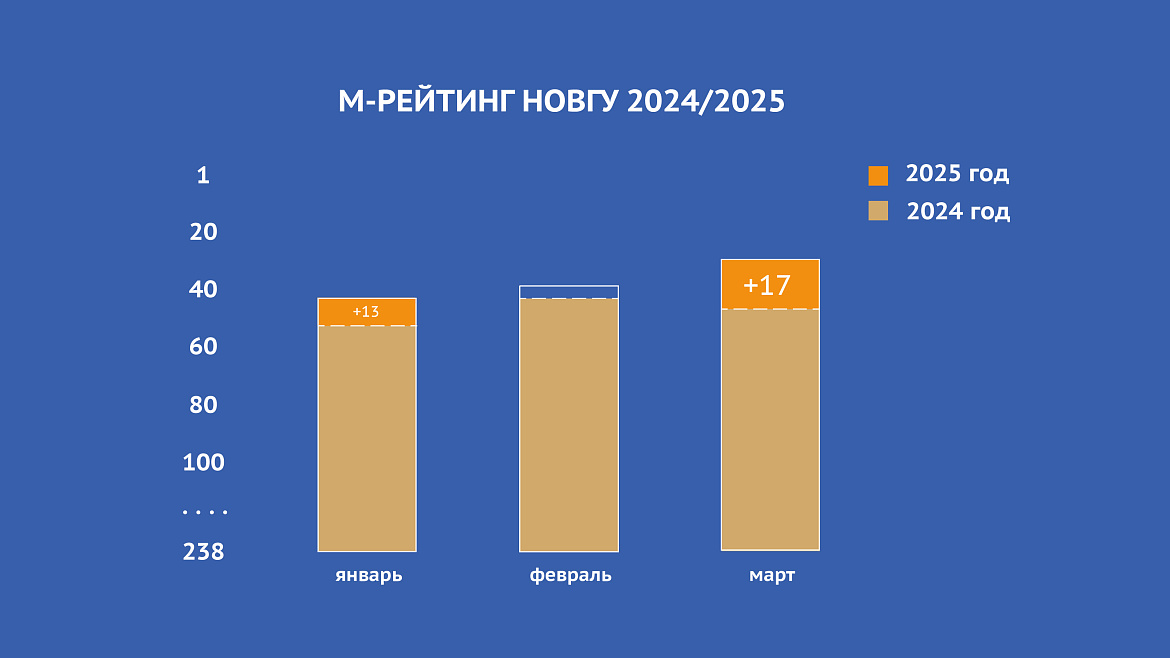 В сводном рейтинге за март Новгородский университет занял 30 место, улучшив свои показатели по сравнению с январём и февралём на 11 пунктов. По сравнению с первым кварталом 2024 года, университет вырос на 17 пунктов — с 47 места до 30-го.