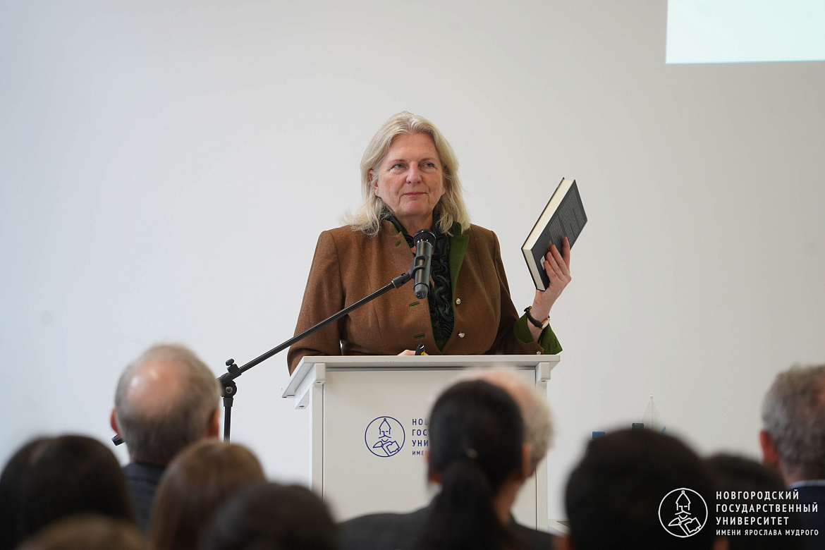 Лекция экс-главы МИД Австрии является частью проекта «12 лекций о…» в рамках приоритетного регионального проекта «Город-Университет». Карин Кнайсль также поделилась с прессой впечатлениями о Великом Новгороде.